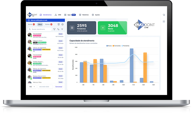 Com o Evodont, você tem uma visão clara do funil de vendas da sua clínica em poucos segundos — e ainda automatiza o atendimento para vender mais com menos esforço da equipe.